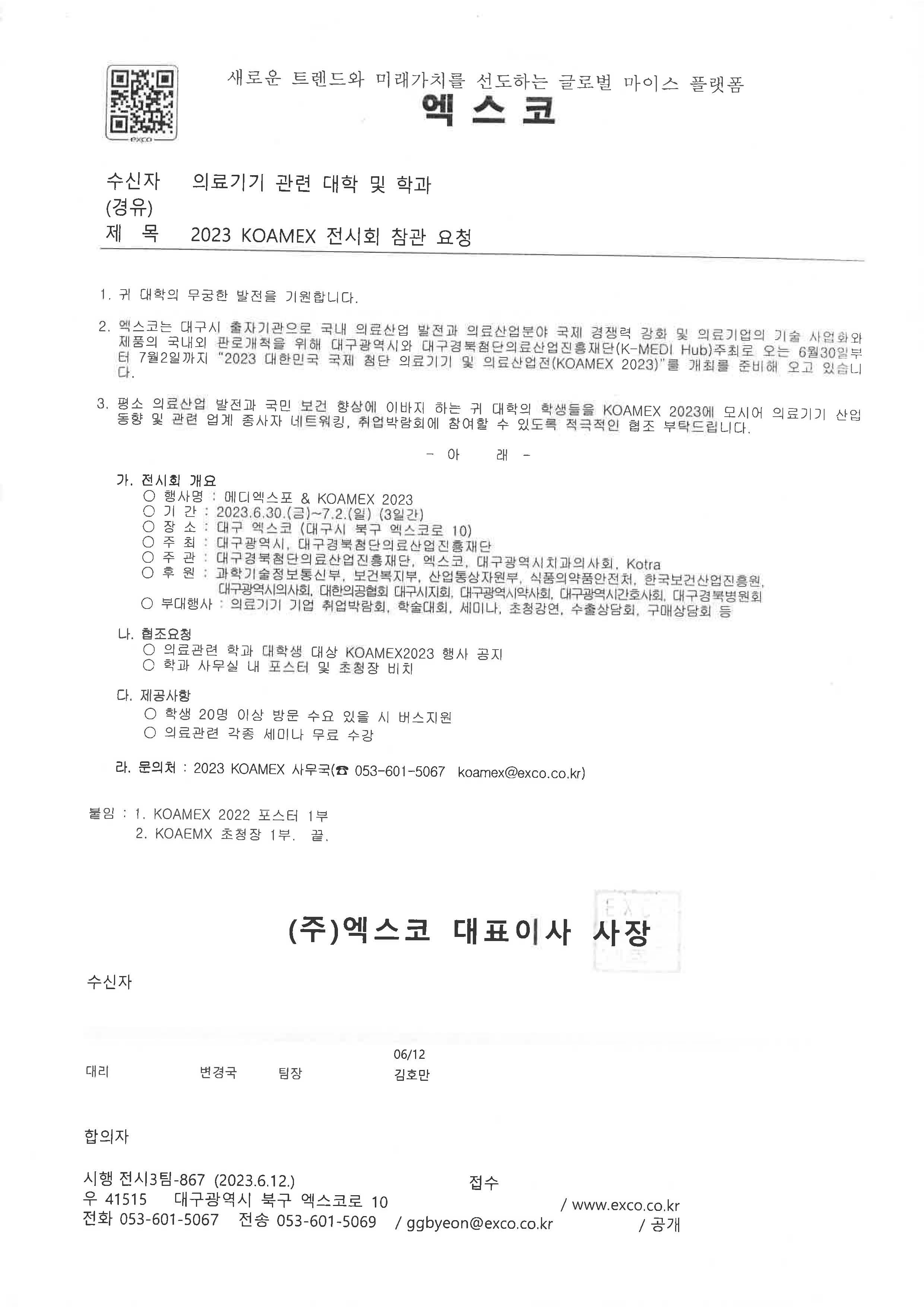 * 행사명: 2023 대한민국 국제첨단의료기기 및 의료산업전