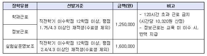 * 정보근로 장학생은 정보교육 이수 필수(교육은 학기 중 진행되며, 세부일정은 추후 통보)
